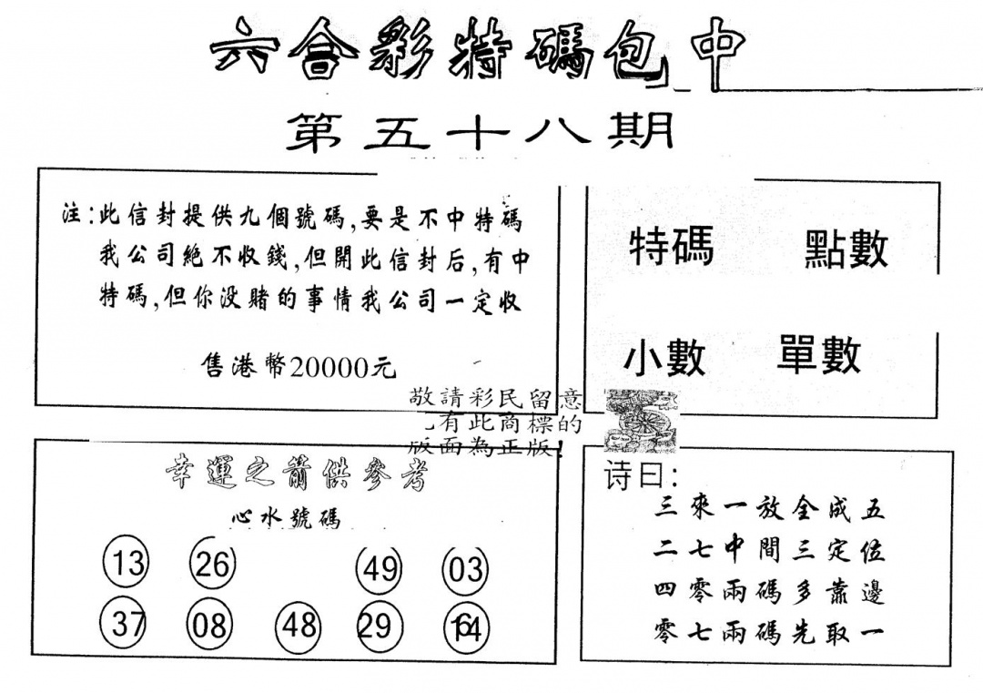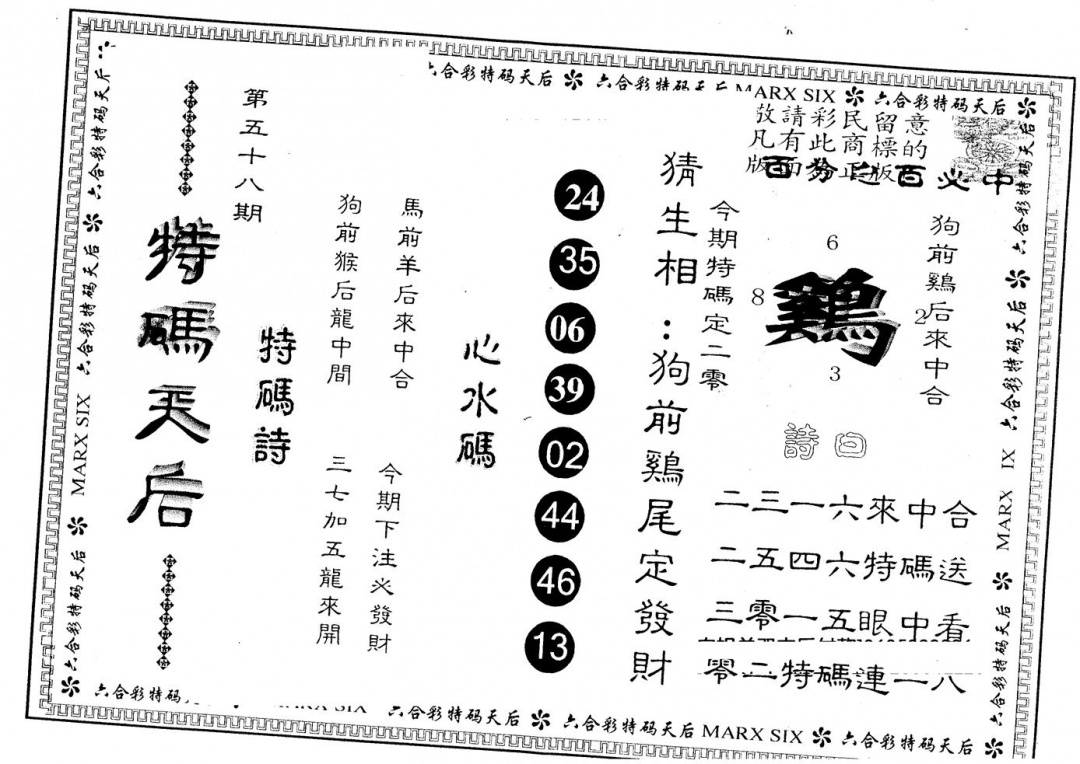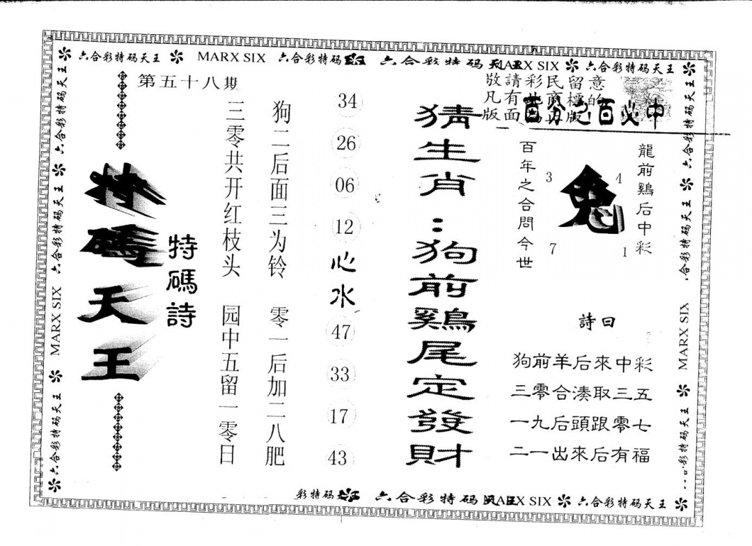 另版曾道人特码诗